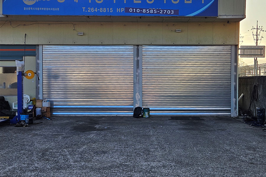철재/스텐판의 슬랏트를 사용하여 도난 및 경비(폐쇄형)를 목적으로 설치하는 셔터입니다. 슬랏트가 판의 형태로 되어있어 셔터가 시공되면 막힌 면으로 벽의 형태를 띄고 있습니다. 설치 비용, 유지 보수 관리 비용이 저렴한 편입니다. 특히 스텐판슬랏트는 부식을 방지할 수 있습니다.